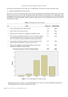 respondents have not heard about green tourism. However, Table 2 shows that the overall mean score for questions asked