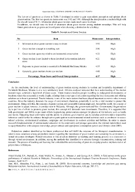 green tourism. The first two questions mean score was 3.92 and 3.96. Although the interpretation considered high with
