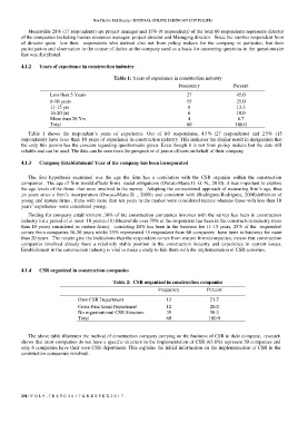 Table 2: CSR organized in construction companies