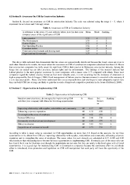 each other. Based on the results, the mean values for awareness on CSR of construction companies calculated less than 4.0. Means