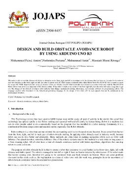 out. The design of the obstacle avoidance robot includes three things: mechanical systems, electronics, and Arduino software for programming robots. The