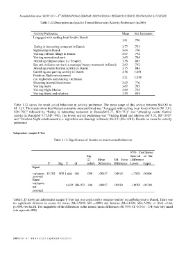 Table 1.12 Descriptive analysis for Tourist Behaviour (Activity Preference) (n=366)