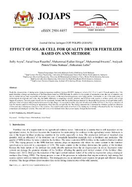EFFECT OF SOLAR CELL FOR QUALITY DRYER FERTILIZER