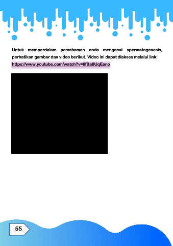 Untuk memperdalam pemahaman anda mengenai spermatogenesis, perhatikan gambar dan video berikut. Video ini dapat diakses melalui link: https://www.youtube.com/watch?v=6fBa8UqEano 55