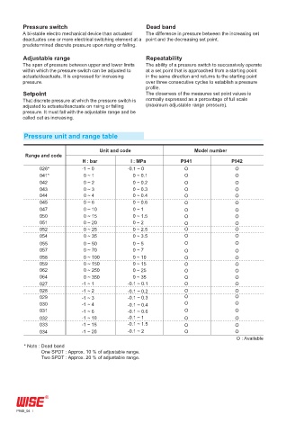 adjusted to actuate/deactuate on rising or falling (maximum adjustable range pressure).