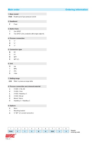 Main order Ordering information
