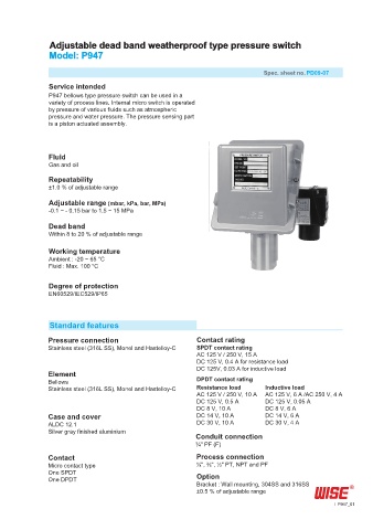 P947 bellows type pressure switch can be used in a