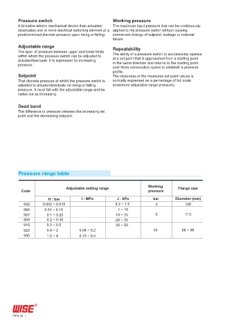 within which the pressure switch can be adjusted to at a set point that is approached from a starting point