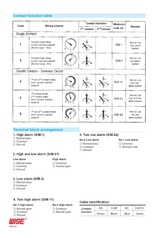 pointer reachse setpoint 1 contact 2 contact code no. high alarm