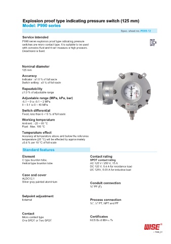 Helical type bourdon tube AC 125 V / 250 V, 15 A