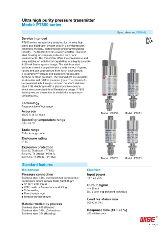 ±0.25 % of full scale Model : PT850 Model : PT851