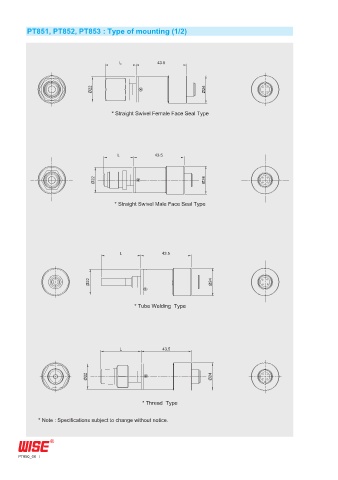 PT851, PT852, PT853 : Type of mounting (1/2) * Note : Specifications subject to change without notice. PT850_06