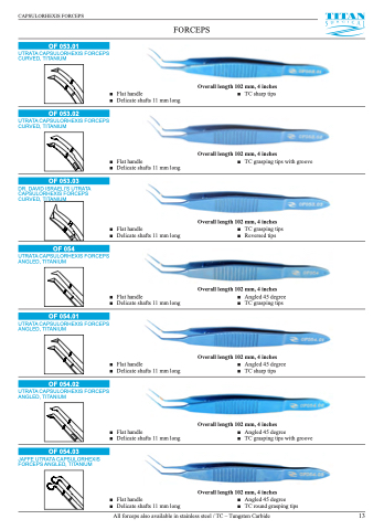 All forceps also available in stainless steel / TC – Tungsten Carbide 13