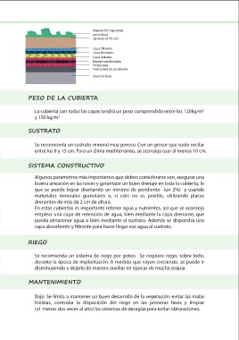 za, ligada a una capa de sustrato poco profunda y bajo contenido de nutrientes. La cubierta con todas las capas tendrá un peso comprendido entre los 120kg/m 2