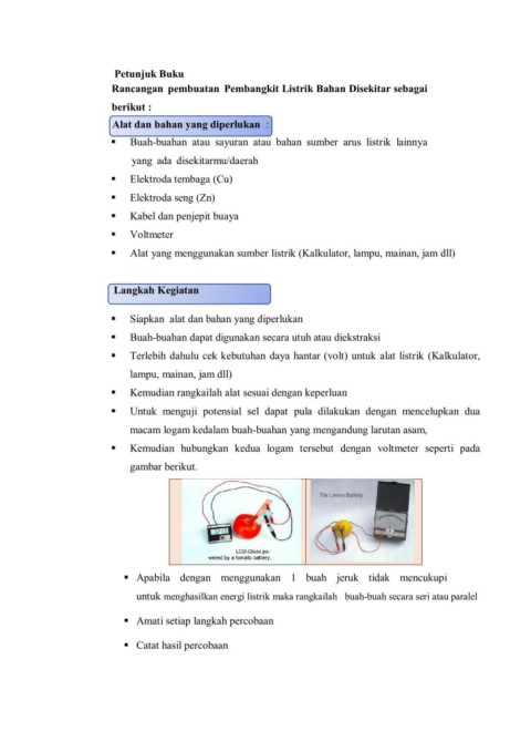 Buah-buahan atau sayuran atau bahan sumber arus listrik lainnya