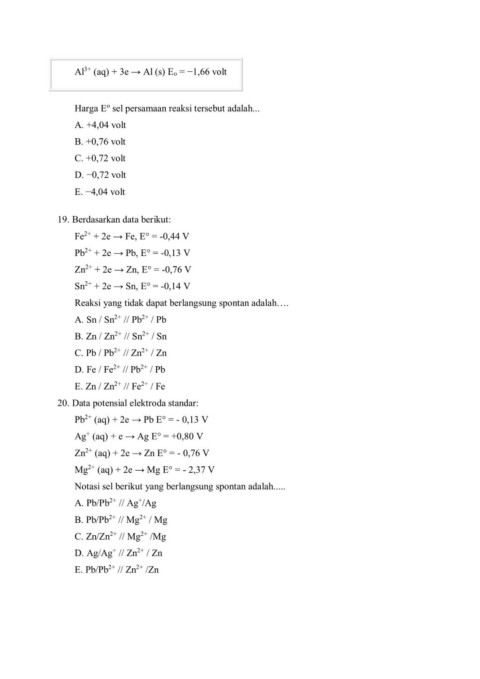 Notasi sel berikut yang berlangsung spontan adalah.....