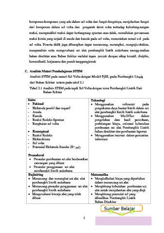 Tabel 2.1 Analisis STEM pada topik Sel Volta dengan tema Pembangkit Listrik Dari