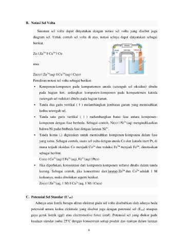 diagram sel. Untuk contoh sel volta di atas, notasi selnya dapat dinyatakan sebagai