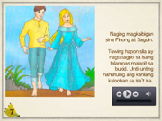 Naging magkaibigan sina Pinong at Saguin. Tuwing hapon sila ay nagtatagpo sa isang talampas malapit sa bukid. Unti-unting nahuhulog ang kanilang kalooban sa isa`t isa. 7