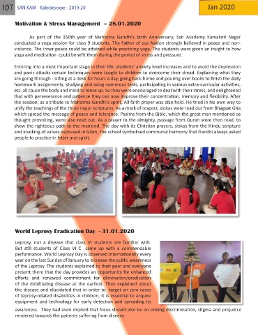 conducted a yoga session for class 9 students. The Father of our Nation strongly believed in peace and non-