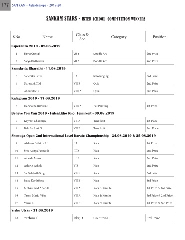 SANKAM STARS - INTER SCHOOL COMPETITION WINNERS