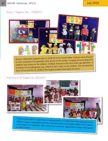 Nursery celebrated puppetry day on 19.08.19 in the school lobby. Children came dressed