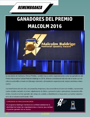 Premio Nacional de Calidad Malcolm Baldrige en 2016, el honor presidencial más alto de la nación por ex-