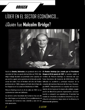 Malcom Baldrige murió el 25 de Julio de 1987 en un miento de los logros en la mejora de calidad, organi-