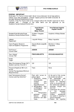 Tajuk Kursus* PSIKOLINGUISTIK PSYCHOLINGUISTICS