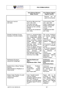 Synopsis of Course Contents dan mendedahkan pelajar and exposes students