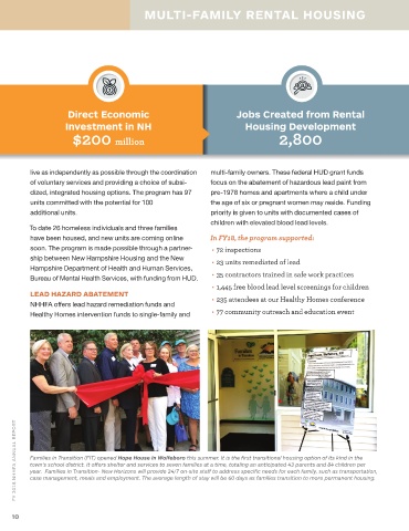 FY 2018 NHHFA ANNUAL REPORT Families in Transition (FIT) opened Hope House in Wolfeboro this summer. It is the first transitional housing option of its kind in the