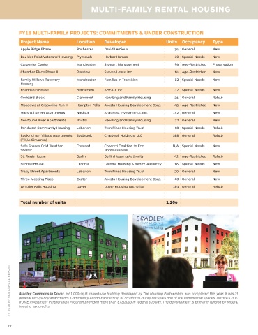 FY 2018 NHHFA ANNUAL REPORT Bradley Commons in Dover, a 61,000-sq.ft. mixed-use building developed by The Housing Partnership, was completed this year. It has 39