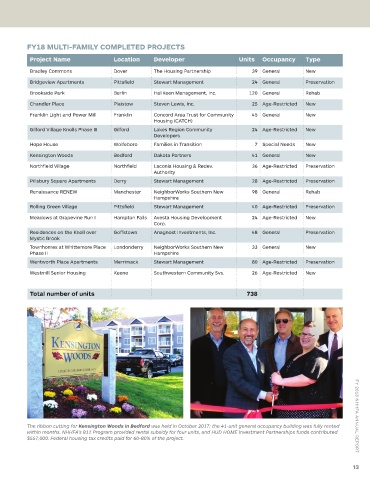 The ribbon cutting for Kensington Woods in Bedford was held in October 2017; the 41-unit general occupancy building was fully rented FY 2018 NHHFA ANNUAL REPORT