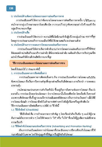 การประเมินผลท าให้ทราบว่าข้อความโฆษณาและการส่งเสริมการขายนั้น ๆ ได้รับความ