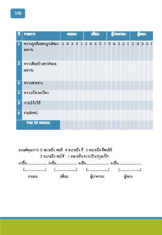 2 หมายถึง พอใช้ 1 หมายถึง ควรปรับปรุงแก้ไข