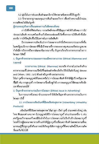 ได้แก่ บุหรี่ควรจะอนุญาตให้โฆษณาหรือไม่ การโฆษณาสินค้าที่ท าให้ผู้บริโภคมีสุขภาพ