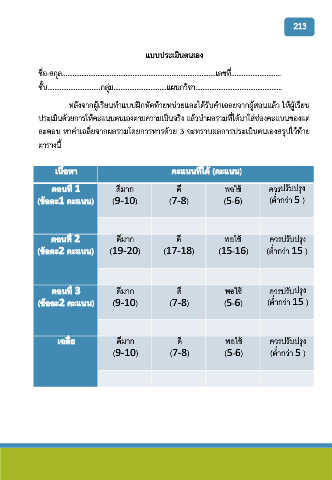 ละตอน หาค่าเฉลี่ยจากผลรวมโดยการหารด้วย 3 จะทราบผลการประเมินตนเองสรุปไว้ท้าย