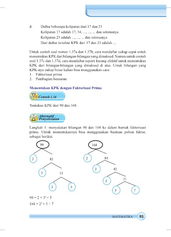 Langkah 1: menyatakan bilangan 90 dan 168 ke dalam bentuk faktorisasi