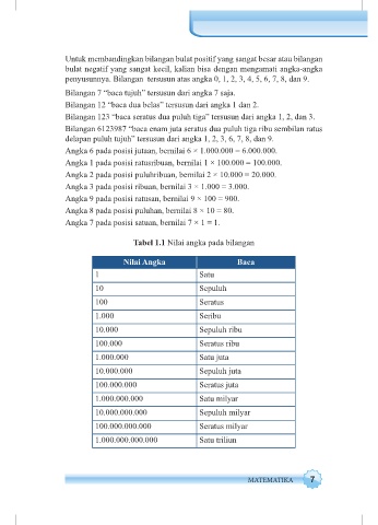 Tabel 1.1 Nilai angka pada bilangan