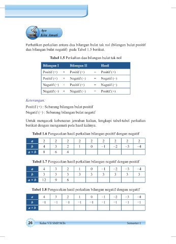 Tabel 1.8 Pengecekan hasil perkalian bilangan negatif dengan negatif