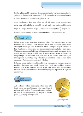 kue. Kue tersebut dibagi sama rata kepada anak yang menghadapi suatu meja.