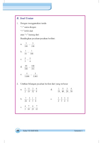 2. Urutkan bilangan pecahan berikut dari yang terbesar