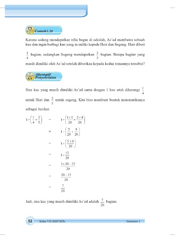 Sisa kue yang masih dimiliki As’ad sama dengan 1 kue utuh dikurangi 1