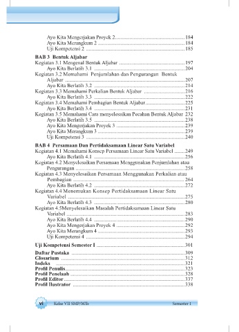 Kegiatan 3.4 Memahami Pembagian Bentuk Aljabar ..............................225
