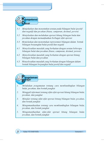 dan negatif) dan pecahan (biasa, campuran, desimal, persen)