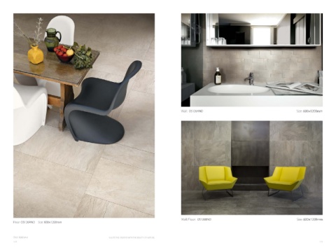 Wall: OS126ANO Size: 600×1200mm Wall/Floor: OS126BNO Size: 600×1200mm Floor: OS126ANO Size: 600×1200mm ITALY REBEKAH SALUTE THE CREATOR WITH THE BEAUTY OF NATURE. 169 170