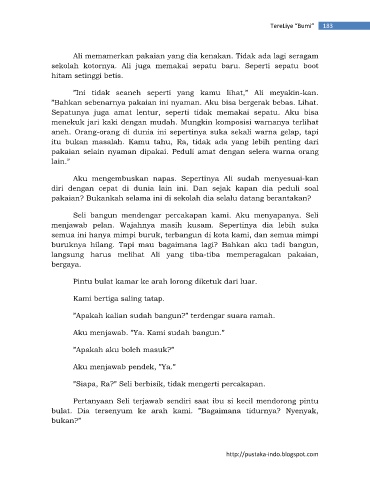 sekolah kotornya. Ali juga memakai sepatu baru. Seperti sepatu boot