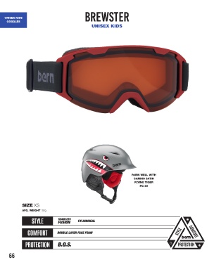 BREWSTER UNISEX KIDS GOGGLES UNISEX KIDS PAIRS WELL WITH CAMINO SATIN FLYING TIGER PG 49 SIZE XS AVG. WEIGHT 92g SEAMLESS CYLINDRICAL FUSION DOUBLE LAYER FACE FOAM B.O.S. 66