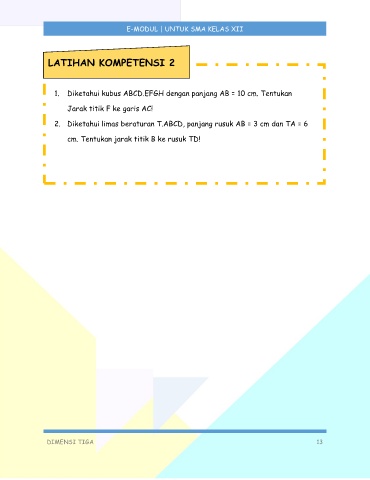 2. Diketahui limas beraturan T.ABCD, panjang rusuk AB = 3 cm dan TA = 6