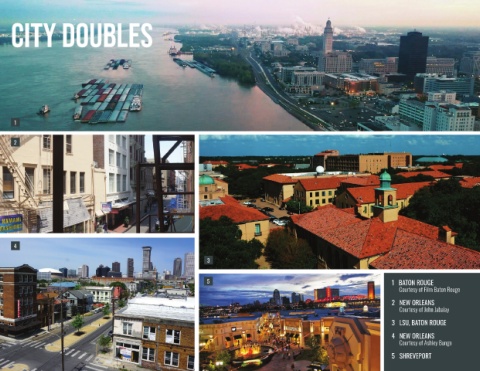 CITY DOUBLES 1 2 4 3 5 1 BATON ROUGE Courtesy of Film Baton Rouge 2 NEW ORLEANS Courtesy of John Jabalay 3 LSU, BATON ROUGE 4 NEW ORLEANS Courtesy of Ashley Bunge 5 SHREVEPORT